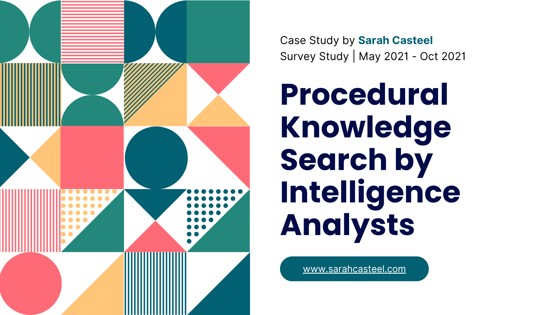 βResearch is just another name for critical thinking.βErika Hall Observation and Interview: Collaborative, Human-Centered Approach to Workflow Optimization Survey Study: Procedural Knowledge Search by Intelligence Analysts